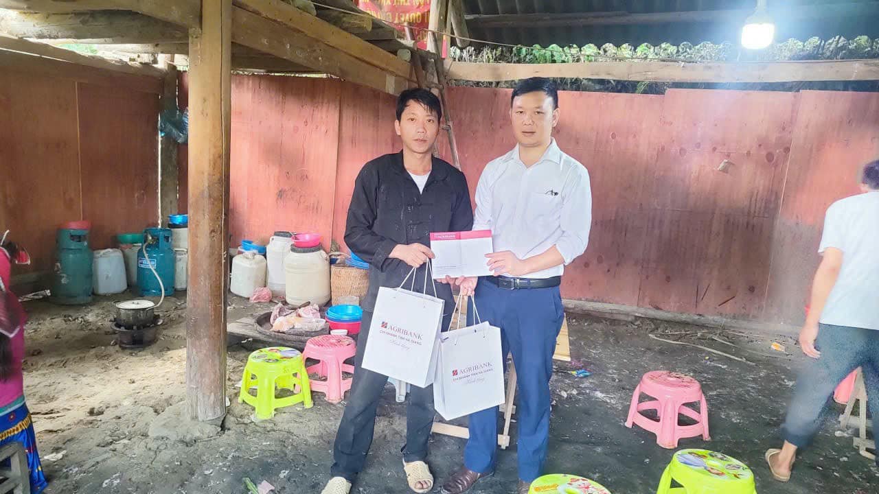 Agribank Chi nhánh huyện Hoàng Su Phì đã đến động viên gia đình bị ảnh hưởng bởi cơn bão số 3