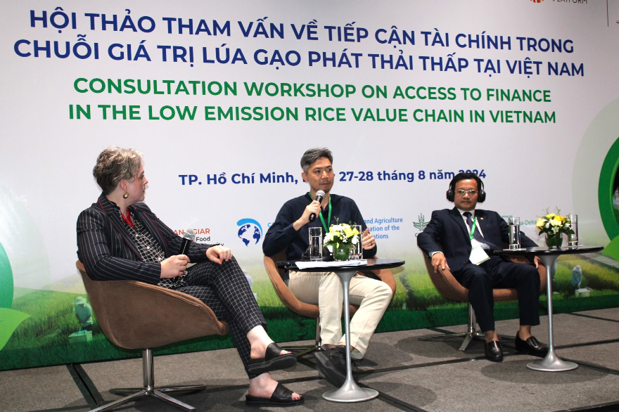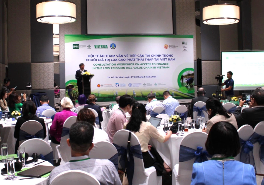 Ngày 27/8/2024, tại TP. Hồ Chí Minh, Bộ Nông nghiệp và Phát triển nông thôn, Viện nghiên cứu Lúa gạo Quốc tế (IRRI) và Hiệp hội ngành hàng lúa gạo Việt Nam (VIETRISA) phối hợp tổ chức Hội thảo "Tham vấn về tiếp cận tài chính trong Chuỗi giá trị Lúa gạo phát thải thấp tại Việt Nam”.