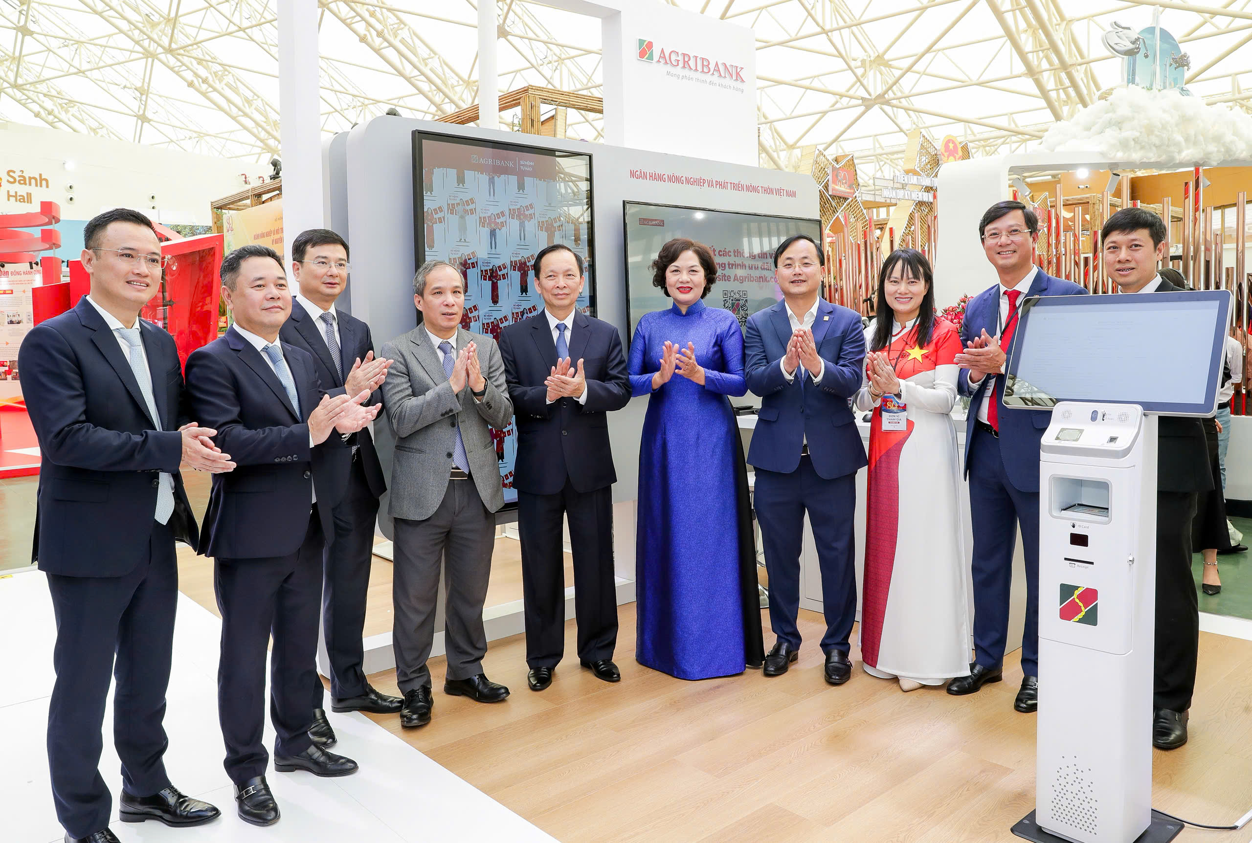 Lãnh đạo Ngân hàng Nhà nước tại khu trưng bày chuyển đổi số của Agribank tại Triển lãm thành tựu đất nước “80 năm hành trình Độc lập – Tự do – Hạnh phúc”