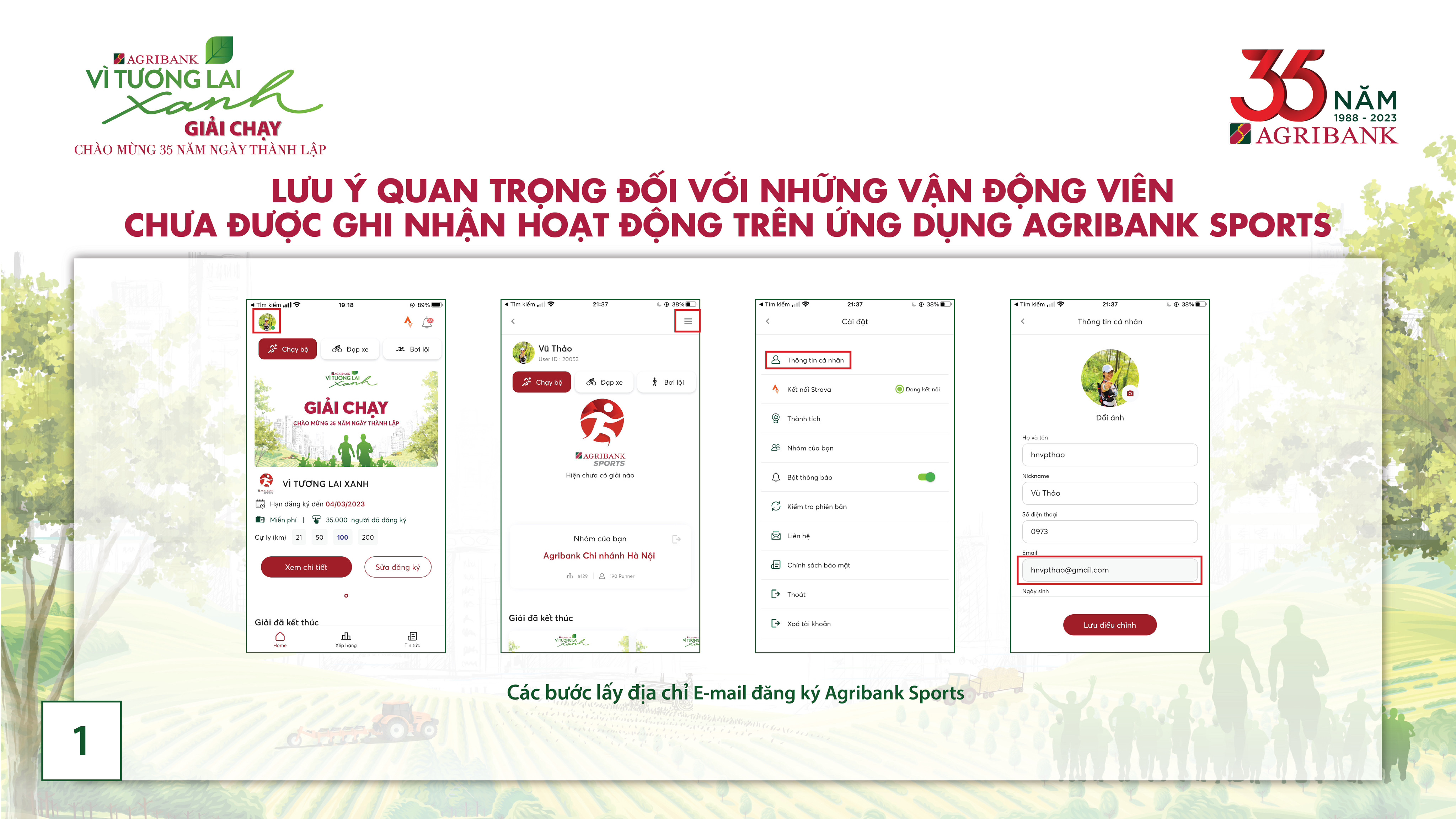 Để tham gia vào Giải chạy "Vì tương lai xanh", với sự hỗ trợ của anh bạn lớn iRace, chúng ta cần có sự đồng bộ về email đăng ký tài khoản giữa Agribank Sports và iRace.
