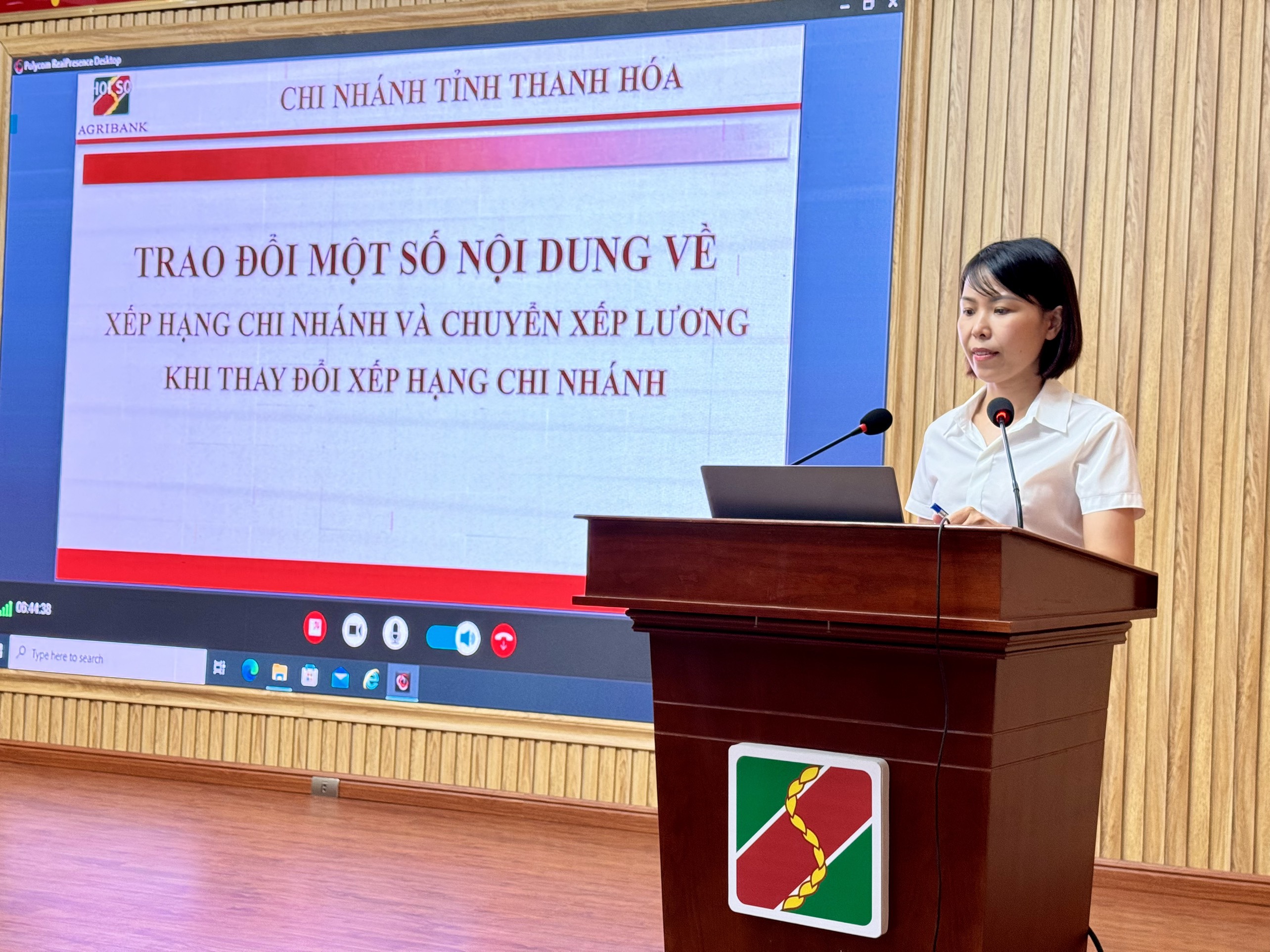 Đ/c Lê Thị Mai Hà – Trưởng phòng Tổng hợp Agribank Thanh Hóa triển khai các quy chế mới trong Hội nghị