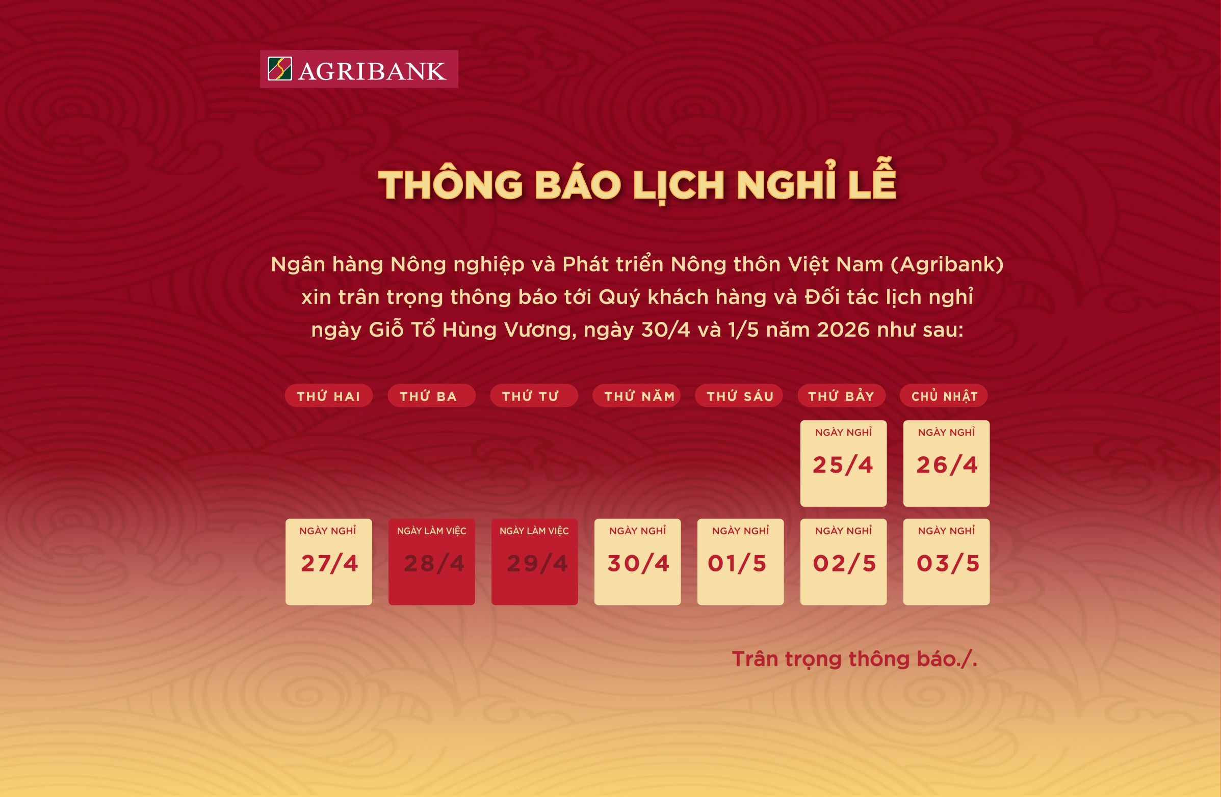 Agribank trân trọng cảm ơn Quý khách hàng đã tin tưởng sử dụng dịch vụ của Agribank!