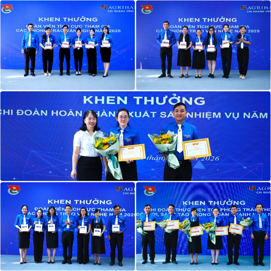 Ban Chấp hành Đoàn cơ sở Agribank Chi nhánh Vĩnh Long khen thưởng các tập thể, cá nhân có thành tích xuất sắc nhằm ghi nhận những nỗ lực không ngừng nghỉ của các cá nhân tiêu biểu. Đây là những hạt nhân nòng cốt, luôn đi đầu trong các phong trào thi đua tại cơ sở, góp phần làm nên thành công chung cho Đoàn cơ sở Agribank Chi nhánh Vĩnh Long trong năm 2025.