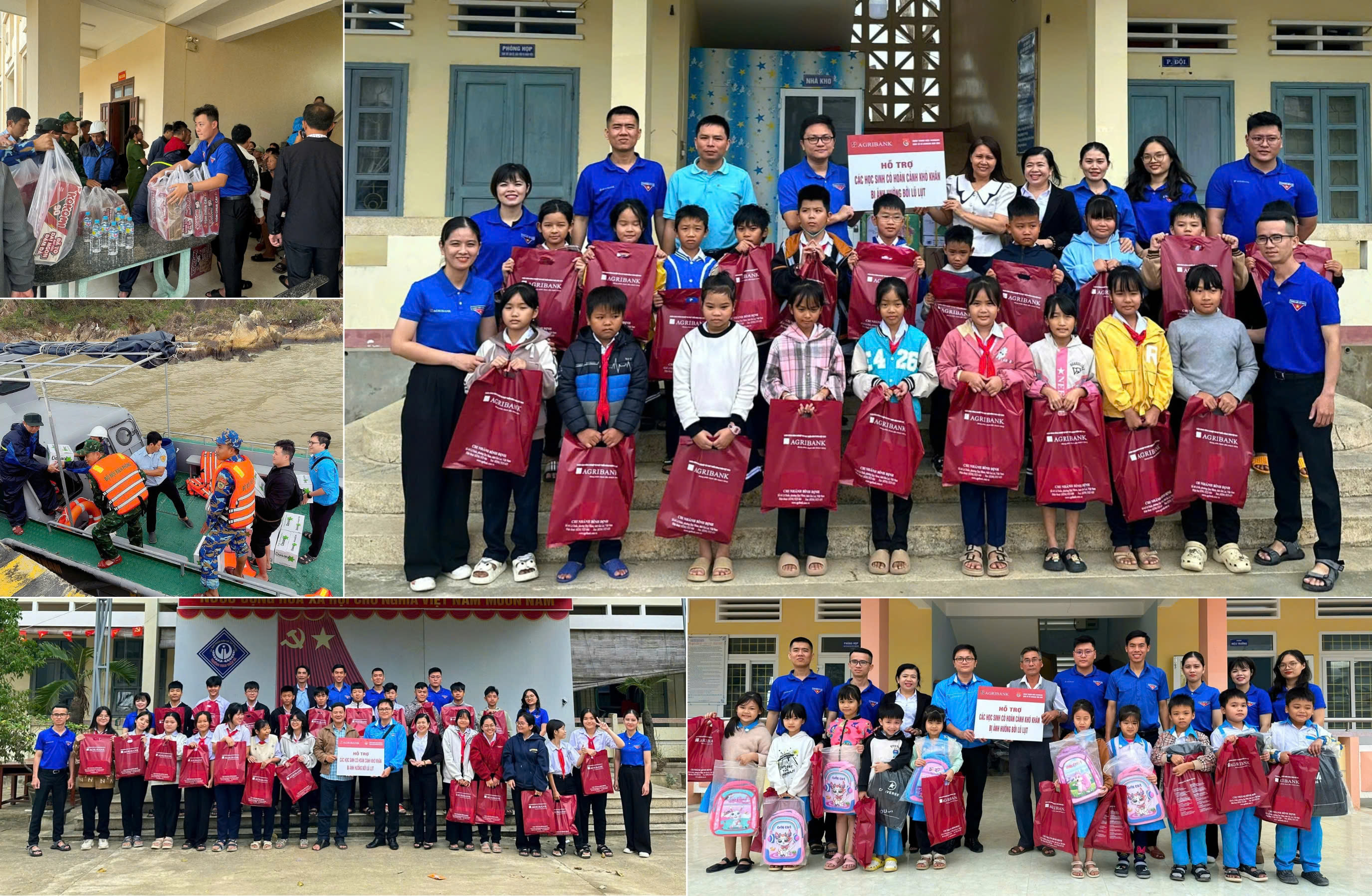 Trong hai ngày 27 và 28/11/2025, Đoàn Thanh niên cơ sở Văn phòng đại diện Agribank khu vực miền Trung (Văn phòng miền Trung) cũng đã phối hợp với các tổ chức Đoàn Thanh niên trên địa bàn Thành phố Đà Nẵng tổ chức chương trình trao tặng quà cho học sinh vùng rốn lũ thuộc hai tỉnh Khánh Hòa và Đắk Lắk.