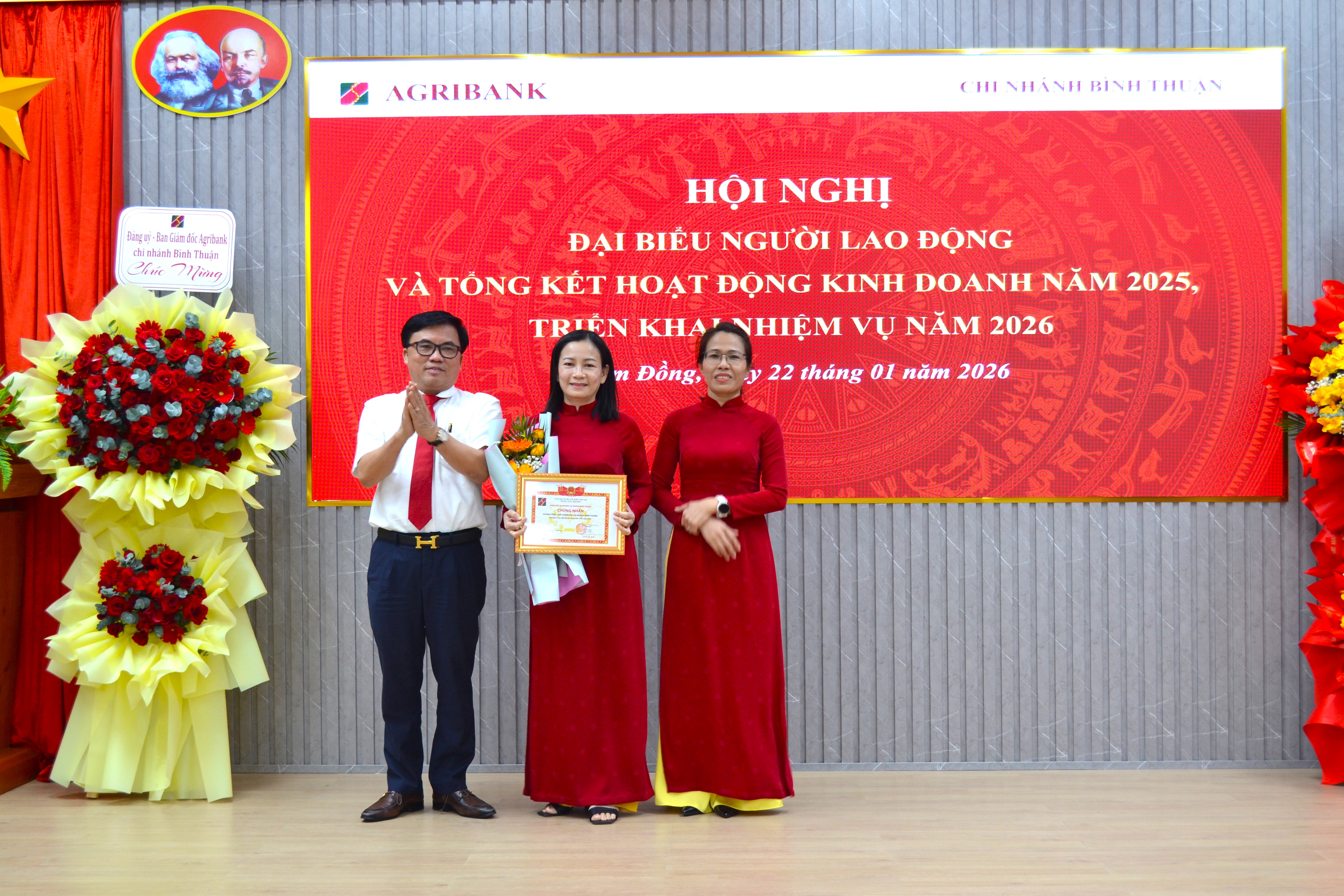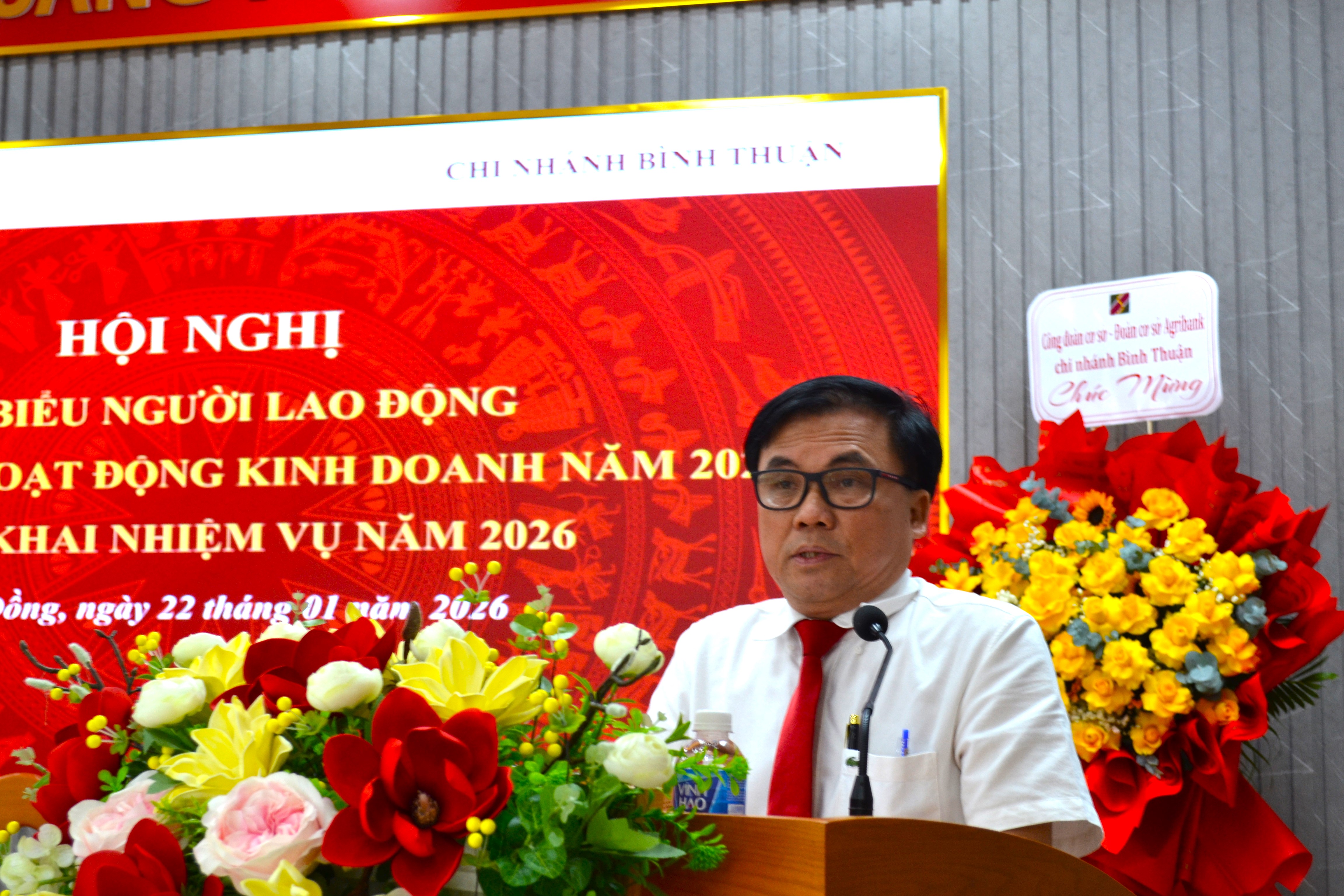 Cũng tại Hội nghị, ông Ngô Tấn Phúc - Phó Giám đốc chi nhánh, Chủ tịch Công đoàn cơ sở Agribank Bình Thuận - đã phát động thi đua năm 2026 trong chi nhánh để cán bộ, người lao động nỗ lực phấn đấu, quyết tâm hoàn thành kế hoạch kinh doanh năm 2026.