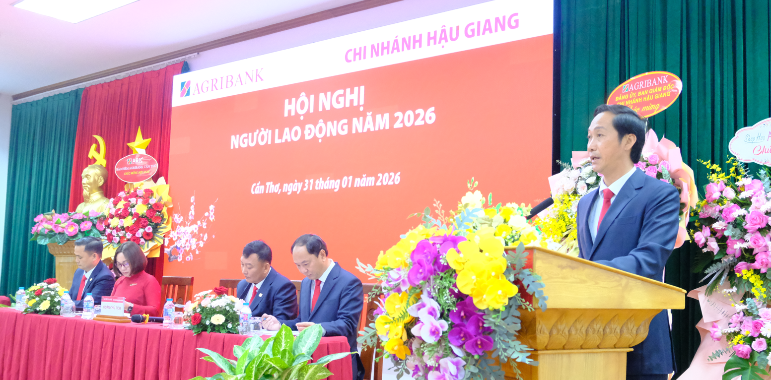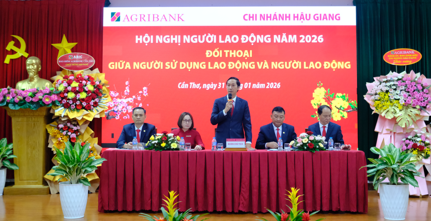 Sáng 31/01/2026, trong không khí rộn ràng những ngày đầu Xuân Bính Ngọ 2026, Agribank Chi nhánh Hậu Giang phối hợp Công đoàn cơ sở Agribank Chi nhánh Hậu Giang long trọng tổ chức Hội nghị tổng kết hoạt động kinh doanh năm 2025, triển khai nhiệm vụ năm 2026 và Hội nghị Người lao động năm 2026. Đây là sự kiện chính trị - chuyên môn quan trọng, thể hiện tinh thần dân chủ, đoàn kết, đổi mới, hướng đến mục tiêu phát triển bền vững; đồng thời khẳng định quyết tâm của tập thể cán bộ, người lao động Agribank Chi nhánh Hậu Giang trong giai đoạn phát triển mới.