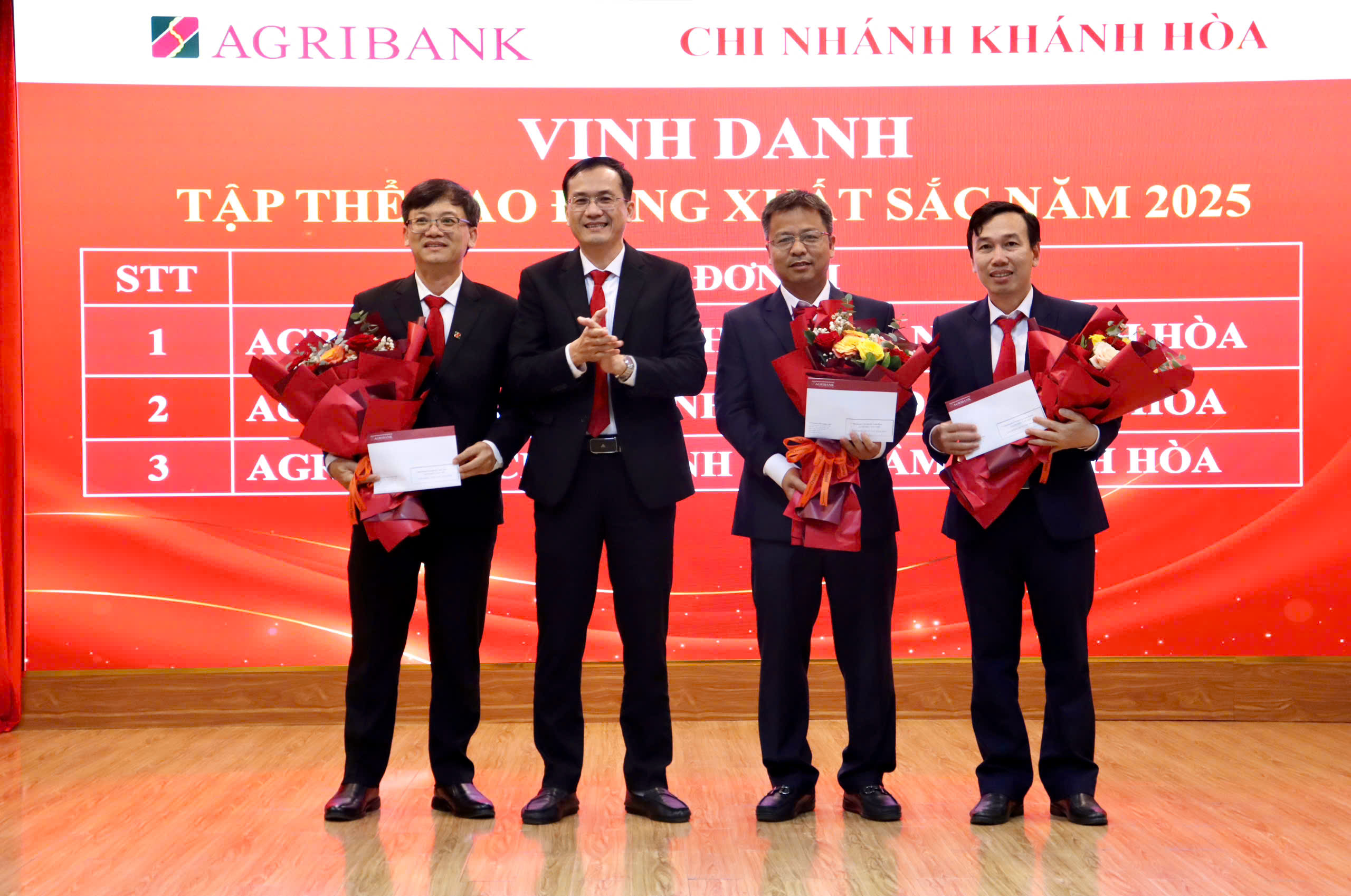 Đến 31/12/2025, Agribank Chi nhánh Khánh Hòa hoàn thành 6/7 các chỉ tiêu kế hoạch kinh doanh được Trụ sở chính giao: Tổng nguồn vốn huy động đạt 160,2% kế hoạch năm 2025; Tỷ lệ nợ xấu thấp hơn 0,23% so với kế hoạch; Thu nợ xử lý rủi ro đạt 182,2%; Thu dịch vụ đạt 105% kế hoạch năm 2025; Tổng dư nợ cho vay đạt 84,5% kế hoạch năm 2025.
