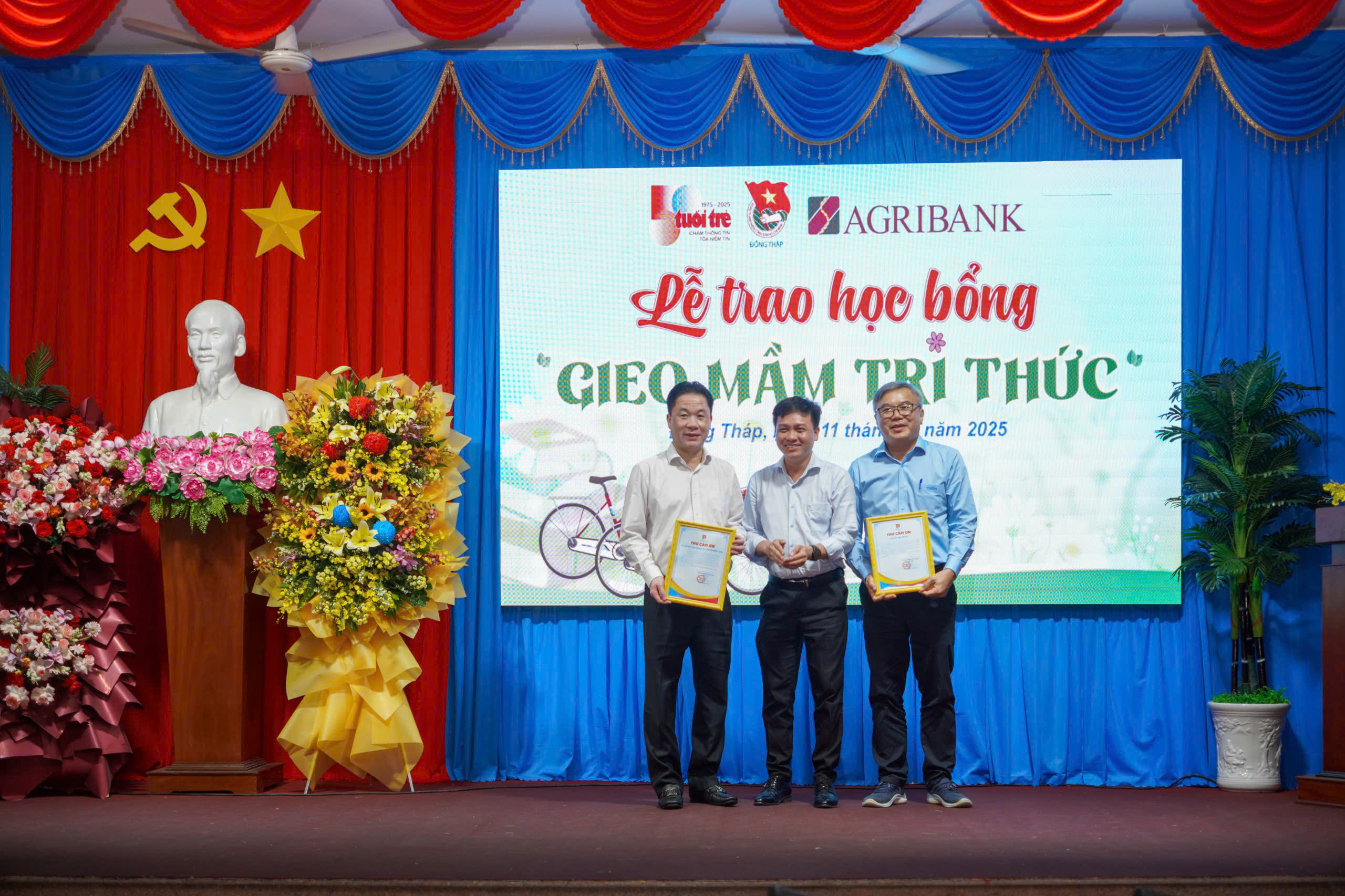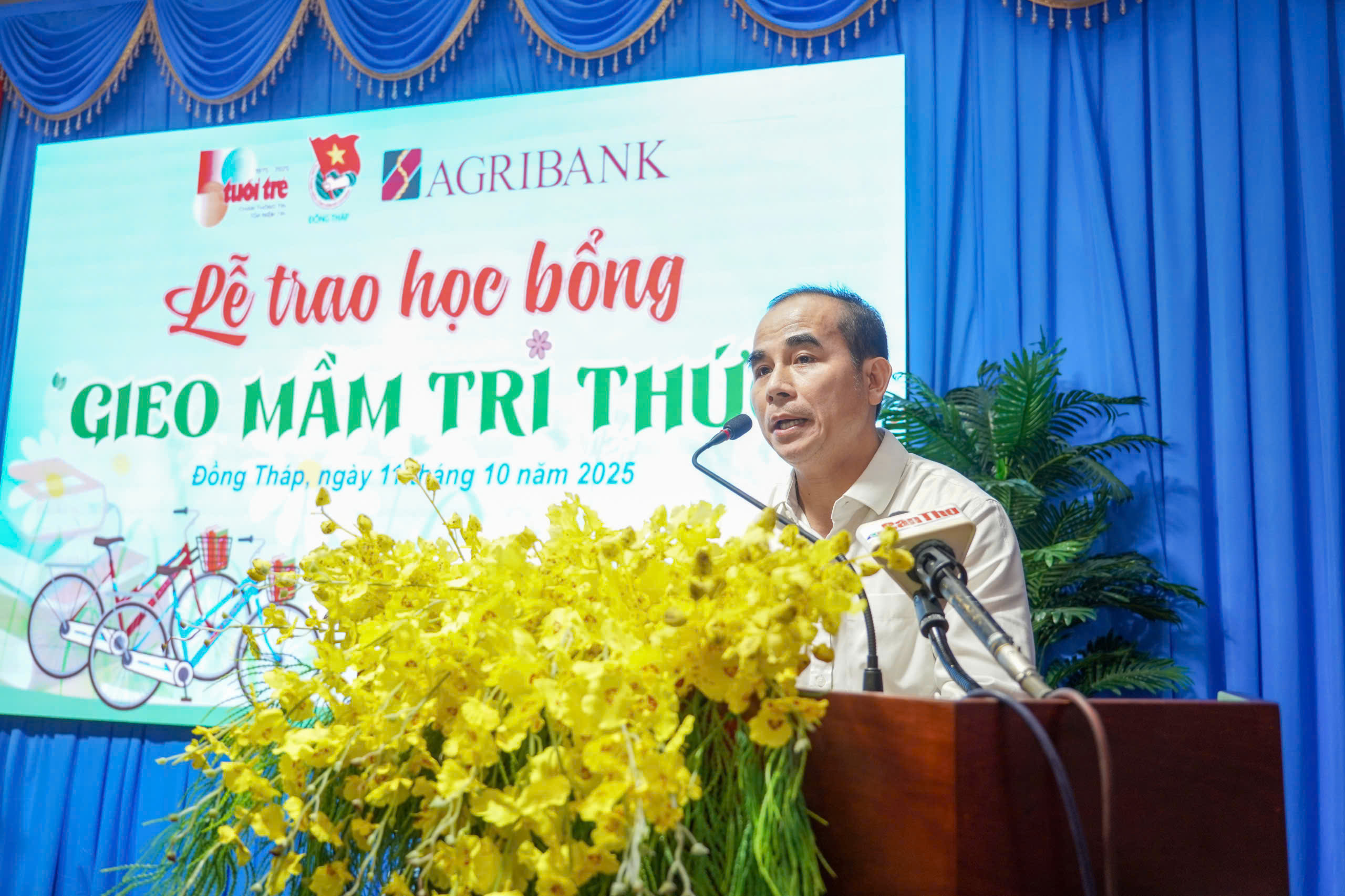 Sáng ngày 11/10/2025, tại phường Long Thuận (tỉnh Đồng Tháp), Báo Tuổi trẻ phối hợp với Tỉnh Đoàn Đồng Tháp và Agribank Chi nhánh Phú Nhuận tổ chức Lễ trao học bổng “Gieo mầm tri thức”.