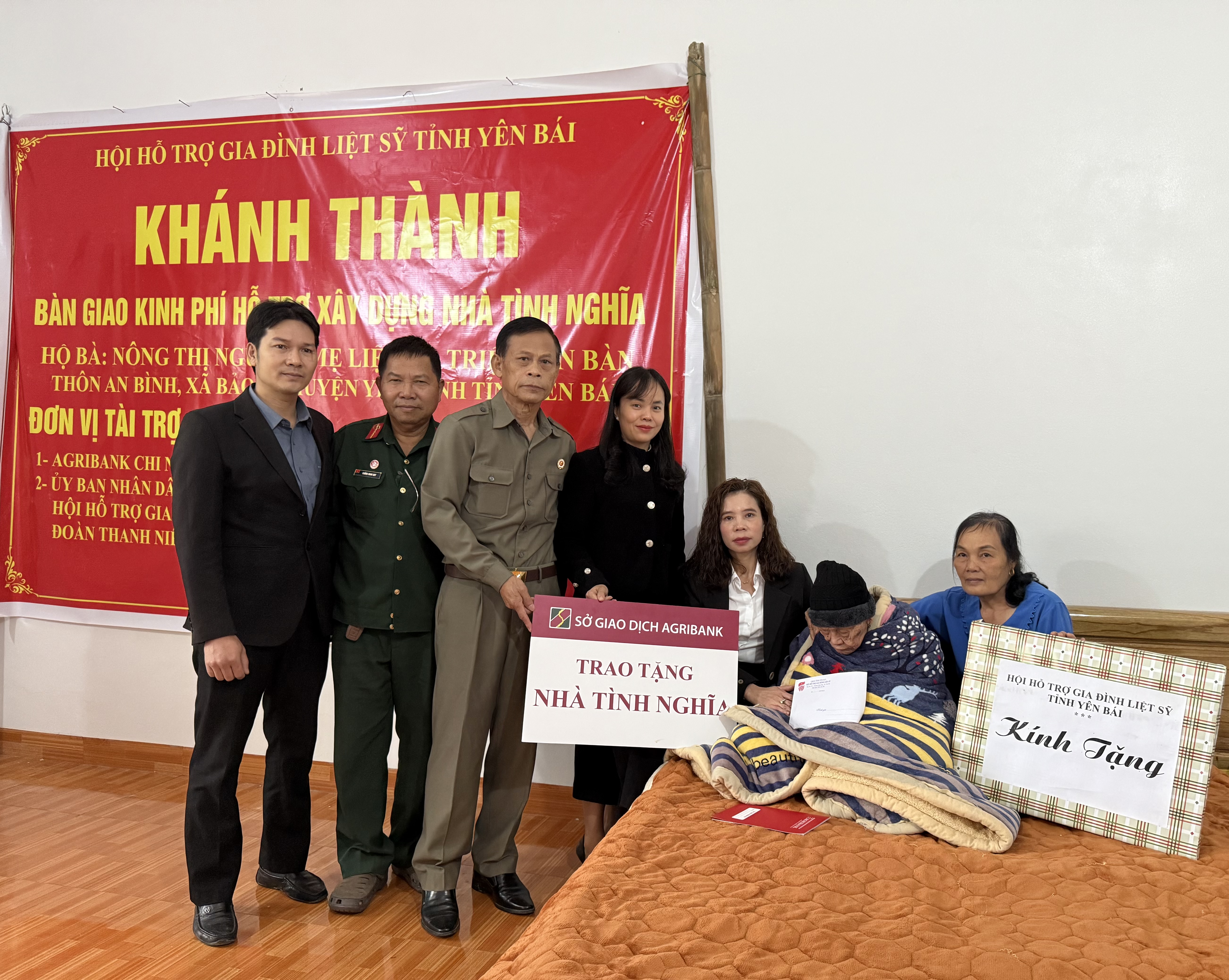 Trong không khí cả nước diễn ra các hoạt động tri ân nhân kỷ niệm 80 năm Ngày thành lập Quân đội nhân dân Việt Nam (22/12/1944 - 22/12/2024), ngày 6/12/2024 Agribank Chi nhánh Sở giao dịch phối hợp với Hội Hỗ trợ Gia đình Liệt sĩ (Hội HTGĐLS) tỉnh Yên Bái tổ chức lễ bàn giao Nhà tình nghĩa cho gia đình bà Nông Thị Nguyên - người thân liệt sĩ có hoàn cảnh khó khăn tại thôn An Bình, xã Bảo Ái, huyện Yên Bình, tỉnh Yên Bái.