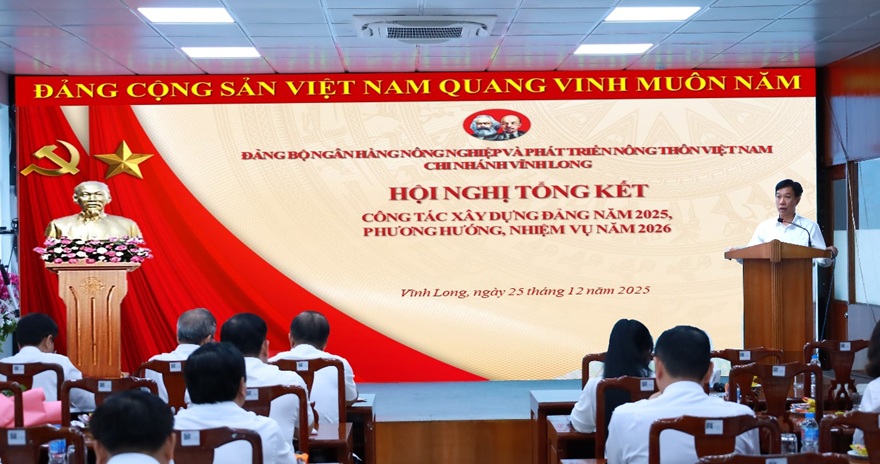Bước sang năm 2026, dự báo tình hình thế giới và trong nước còn nhiều diễn biến phức tạp. Hội nghị đã thống nhất đề ra phương hướng, nhiệm vụ với quyết tâm chính trị cao nhất. Đảng bộ xác định việc xây dựng tổ chức Đảng vững mạnh về cả chính trị, tư tưởng, đạo đức và tổ chức là nhiệm vụ then chốt. Tiếp tục thực hiện tốt công tác phát triển Đảng viên mới, đặc biệt là những quần chúng ưu tú, trẻ tuổi có trình độ chuyên môn cao. Lãnh đạo đơn vị thực hiện quyết liệt các giải pháp tăng trưởng tín dụng đi đôi với kiểm soát chất lượng nợ. Đẩy mạnh chuyển đổi số trong hoạt động ngân hàng để mang lại trải nghiệm tốt nhất cho khách hàng, khẳng định vị thế của Agribank trên địa bàn tỉnh. Tiếp tục duy trì và phát triển các hoạt động an sinh xã hội, thể hiện tinh thần “Ngân hàng vì cộng đồng”. Đây là cách để Đảng bộ và Chi nhánh xây dựng hình ảnh đẹp, nhân văn trong lòng nhân dân tỉnh Vĩnh Long.