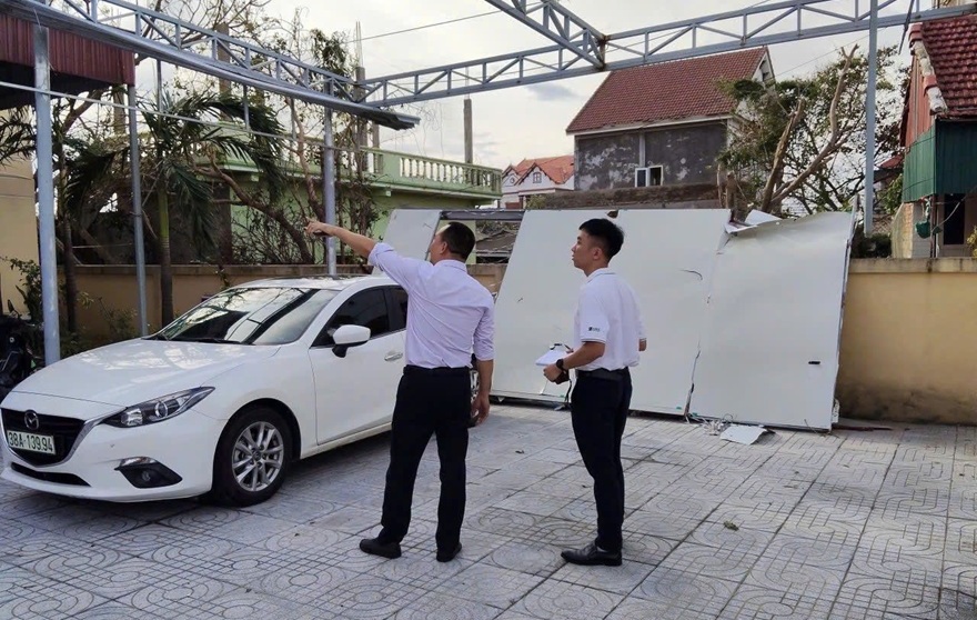 Ngay trong những giờ đầu tiên xảy ra bão lũ, các hình ảnh hiện trạng tổn thất tại các điểm tâm bão đã được gửi lên nhóm bồi thường. Những chỉ đạo quyết liệt từ Ban Lãnh đạo công ty, Ban Giám định bồi thường, những giám định viên không ngại mưa gió mạo hiểm vượt đường trơn trượt, ngập nước để tiến hành khảo sát, đo đạc, lập biên bản thiệt hại - “đi trước” để giúp người dân làm hồ sơ. Họ mang theo cả máy móc, thiết bị cần thiết đến tận nơi, chụp ảnh, đo đạc, xác minh hiện trạng để đảm bảo đánh giá chính xác, khách quan.