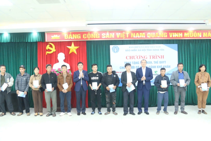 Ngày 11/12/2025, Agribank Chi nhánh Hưng Yên vinh dự đồng hành cùng Bảo hiểm xã hội tỉnh Hưng Yên trong chương trình “Trao tặng sổ BHXH, thẻ BHYT cho người có hoàn cảnh khó khăn - Mang Tết ấm đến với người nghèo Xuân Bính Ngọ 2026” trao tặng hơn 200 thẻ BHYT cho người có hoàn cảnh khó khăn tại địa phương.