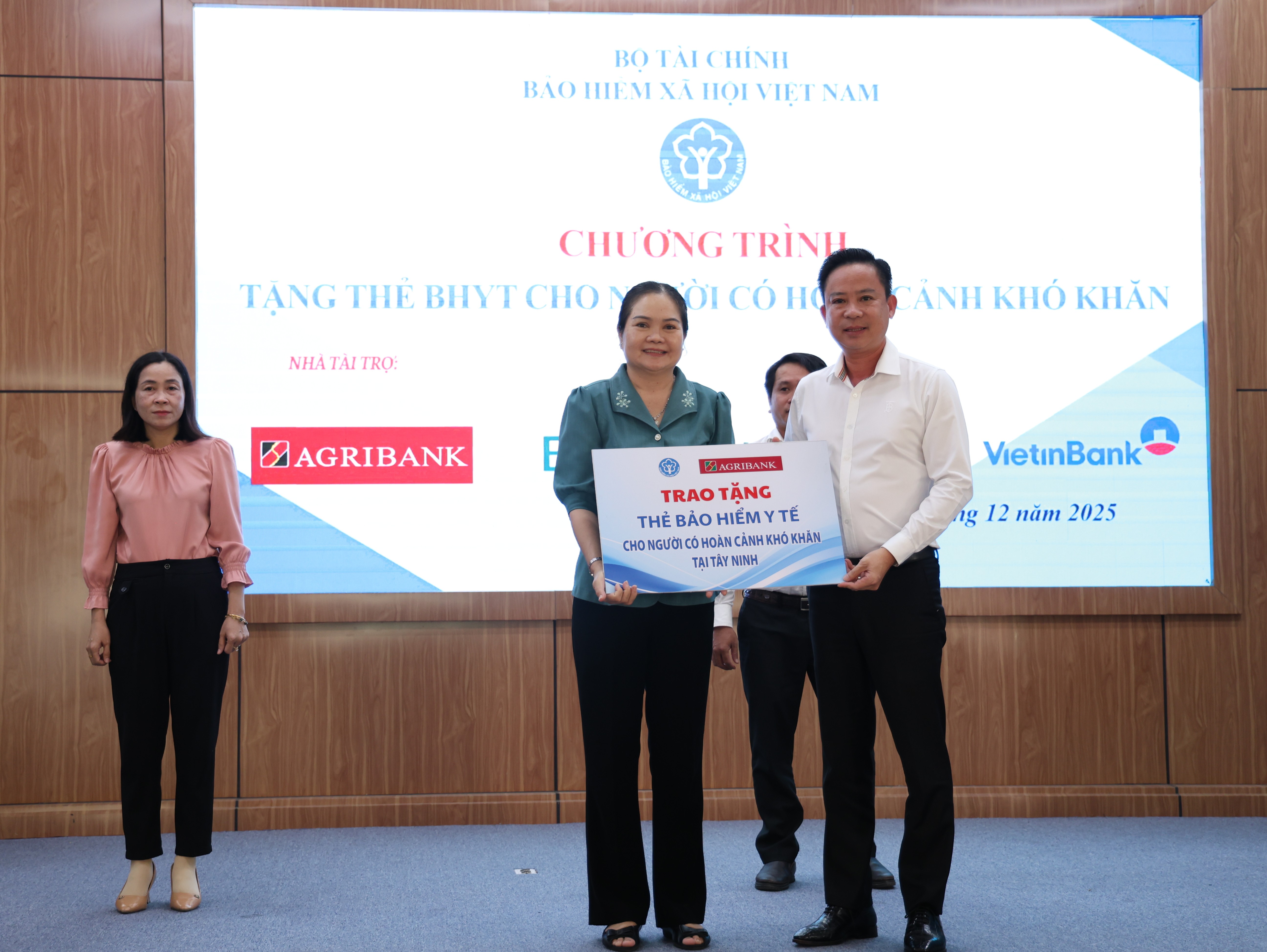 Năm 2025, trong khuôn khổ chương trình “Tặng thẻ Bảo hiểm y tế cho người có hoàn cảnh khó khăn - mang Tết ấm đến với người nghèo Xuân Bính Ngọ” do BHXH Việt Nam phát động, Agribank đã dành nguồn kinh phí 5 tỷ đồng, trao tặng gần 8.000 thẻ BHYT cho người dân khó khăn ở 33 tỉnh, thành phố trên cả nước, lan tỏa tinh thần sẻ chia, góp phần nâng cao điều kiện chăm sóc sức khỏe cho người dân.