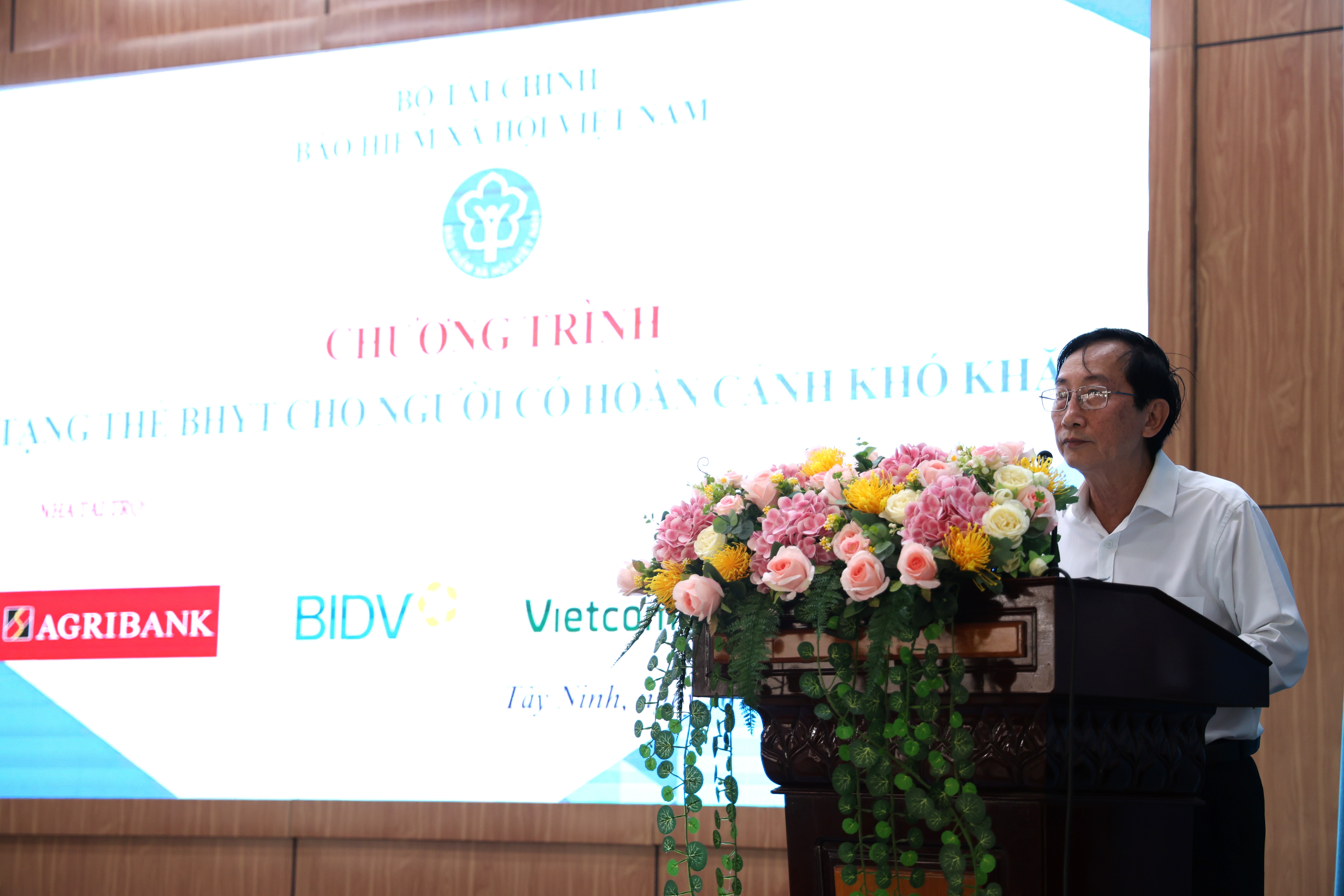 Ông Nguyễn Phúc Đăng - Phó Giám đốc Agribank Chi nhánh Long An trao tặng bảng tài trợ, tặng thẻ BHYT cho người có hoàn cảnh khó khăn tỉnh Tây Ninh