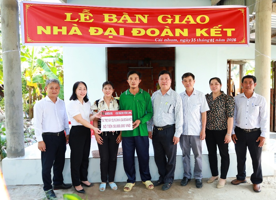 Chiều ngày 15/01/2026, trong không khí của những ngày đầu năm mới 2026, Agribank Chi nhánh Vĩnh Long đã phối hợp cùng chính quyền địa phương xã Cái Nhum tổ chức một sự kiện đầy ý nghĩa: Lễ bàn giao nhà “Đại đoàn kết” cho gia đình ông Võ Hoàng Công. Đây không chỉ là việc trao tặng một mái ấm, mà còn là sự khẳng định cam kết đồng hành cùng cộng đồng của một thương hiệu ngân hàng gắn liền với nông nghiệp, nông dân và nông thôn.