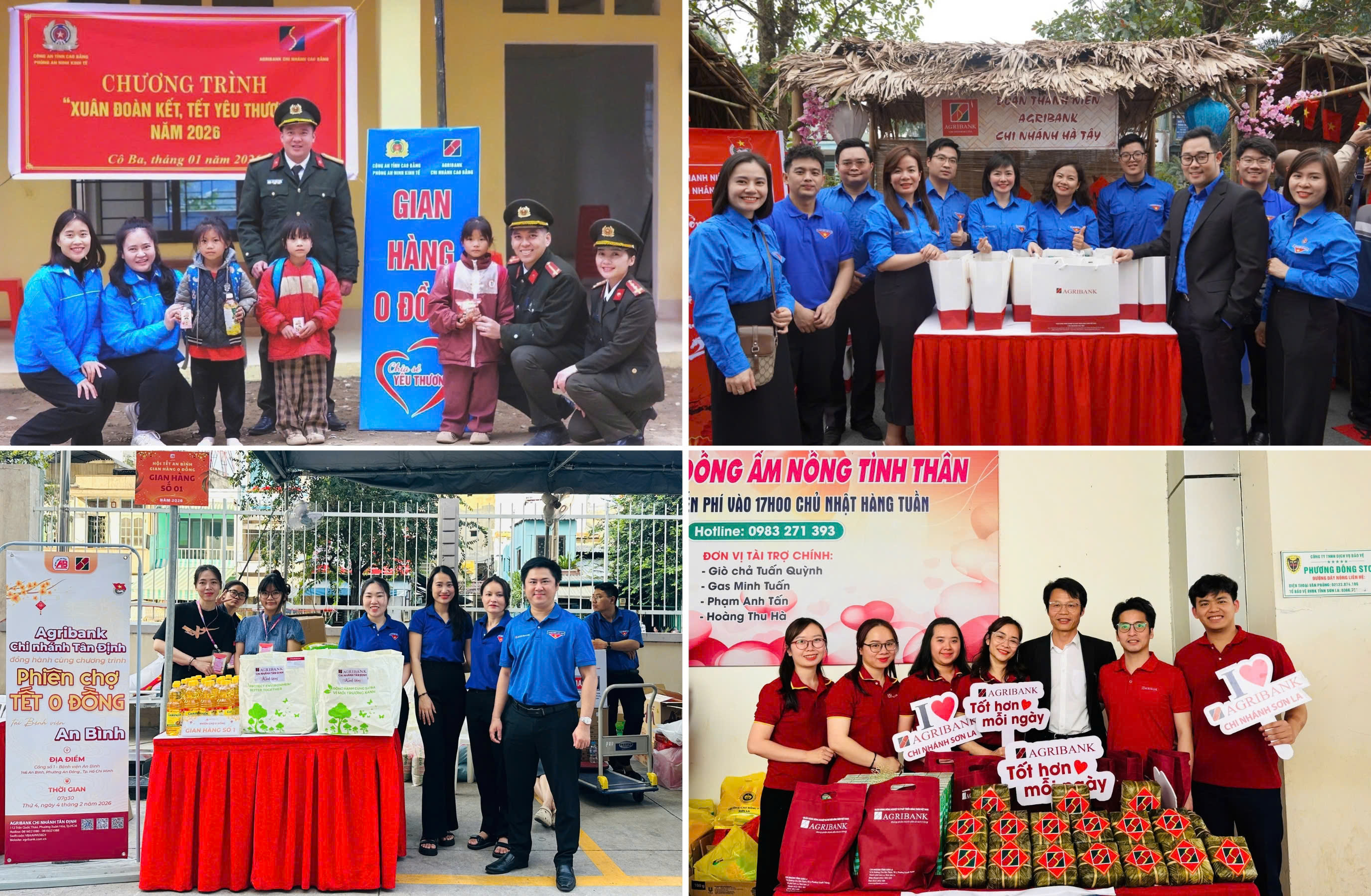 Đặc biệt, tại Cao Bằng, hơi ấm mùa xuân đã đến với đồng bào biên giới thông qua mô hình “Gian hàng 0 đồng – Chia sẻ yêu thương”. Tại đây, hàng trăm suất nhu yếu phẩm thiết yếu đã được trao tận tay bà con, giúp những mâm cơm ngày Tết nơi phên dậu Tổ quốc thêm đầy đặn. Đoàn Diệu Linh - Bí thư Đoàn Thanh niên Agribank chi nhánh Cao Bằng chia sẻ, từng món quà trao đi đều gửi gắm tình cảm của tuổi trẻ ngân hàng dành cho đồng bào biên giới. Việc thiết thực chăm lo mâm cơm ngày Tết là cách để đoàn viên Agribank mang hơi ấm mùa xuân đến với những bản làng nơi phên dậu Tổ quốc.