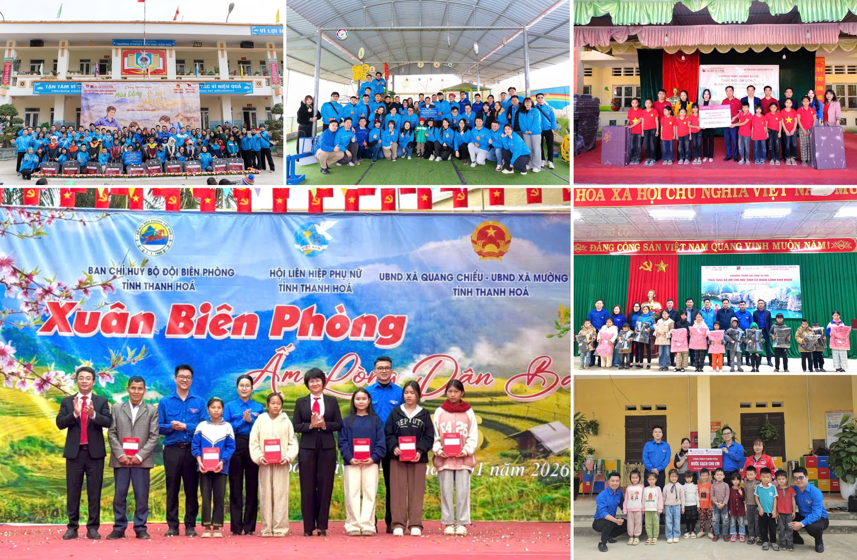 Đặc biệt, trong khuôn khổ chương trình tình nguyện mùa đông tại Tuyên Quang và Hà Giang, Đoàn Thanh niên Agribank cùng Đoàn Thanh niên Văn phòng Quốc hội tổ chức chuỗi hoạt động đền ơn đáp nghĩa và an sinh xã hội quy mô. Tại các điểm dừng chân, đoàn công tác đã ân cần thăm hỏi, trao tận tay hàng trăm suất quà Tết, mang hơi ấm đến với các gia đình chính sách, hộ nghèo và các em học sinh có hoàn cảnh khó khăn.