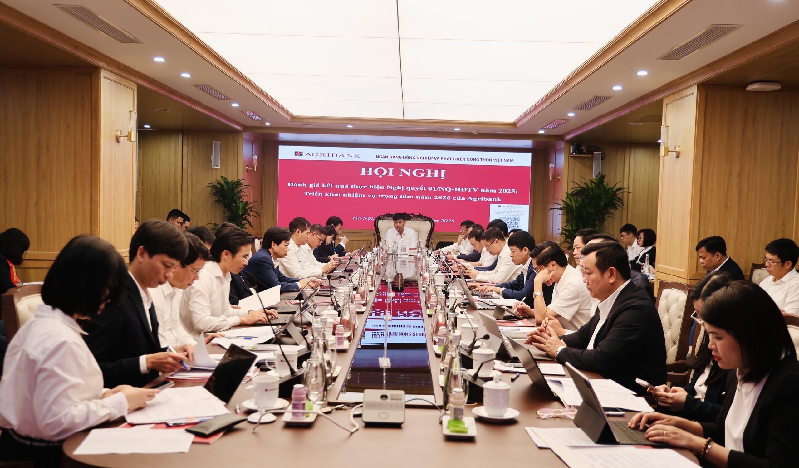 Khi năm tài chính 2025 dần khép lại, trong bối cảnh kinh tế còn nhiều biến động, áp lực đối với yêu cầu tăng trưởng gắn với bảo đảm an toàn hoạt động ngày càng gia tăng, việc Ban Điều hành tổ chức Hội nghị đánh giá kết quả thực hiện Nghị quyết số 01/NQ-HĐTV của Hội đồng thành viên trong hai ngày 23 và 25/12/2025 vì vậy mang ý nghĩa đặc biệt quan trọng. Đây là dịp để Agribank rà soát toàn diện công tác chỉ đạo, điều hành và tổ chức thực hiện nhiệm vụ; làm rõ những kết quả nổi bật, những tồn tại, hạn chế cần tập trung khắc phục; đồng thời thống nhất các giải pháp trọng tâm xây dựng nhiệm vụ năm 2026.