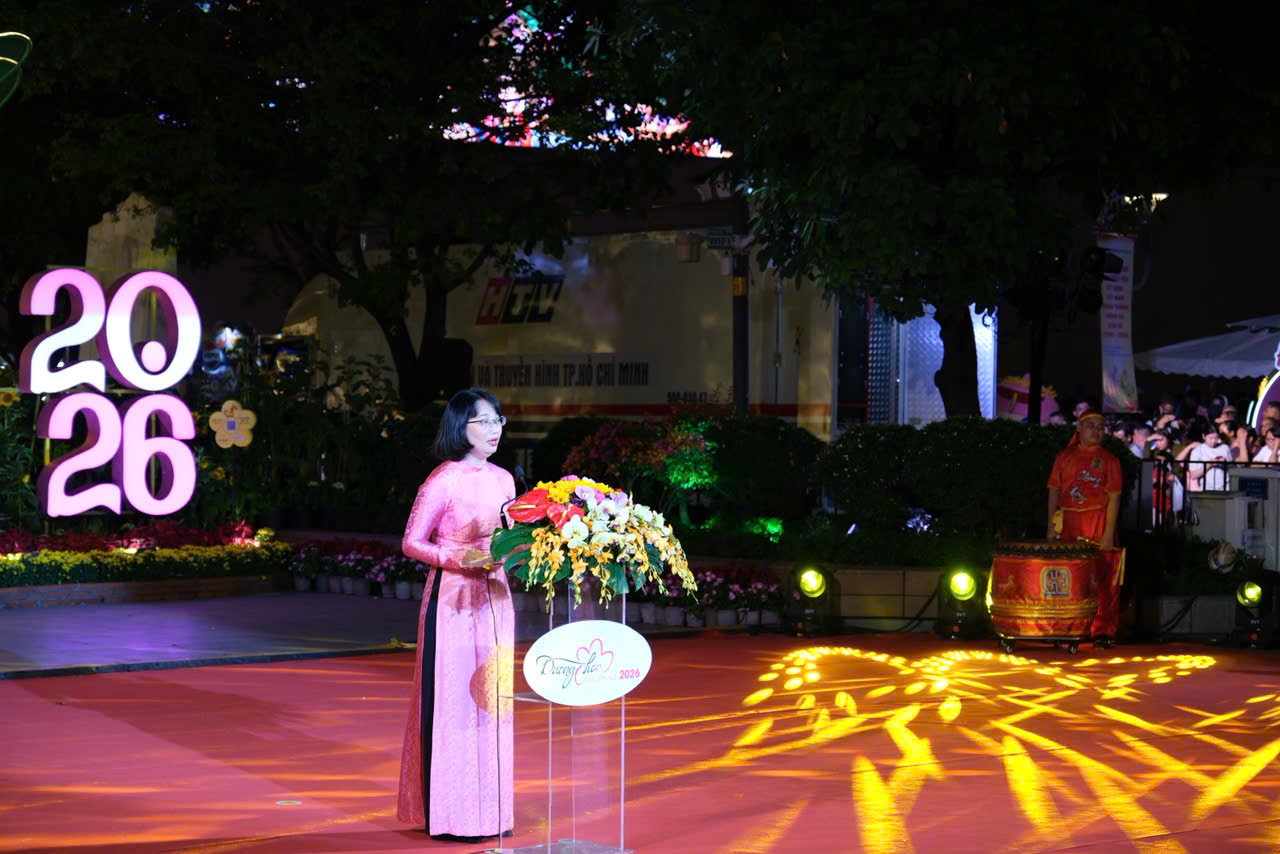 Phát biểu khai mạc, bà Trần Thị Diệu Thúy - Phó Chủ tịch UBND TP. HCM cho biết đường hoa xuân TP. HCM năm nay lần đầu tiên được tổ chức đồng bộ tại phường Sài Gòn, phường Bình Dương và Vũng Tàu. Mỗi khu vực có cung bậc cảm xúc riêng nhưng đều hướng về chủ đề đoàn kết, hội tụ trong kỷ nguyên vươn mình thành siêu đô thị quốc tế khu vực Đông Nam Á của TP. HCM.