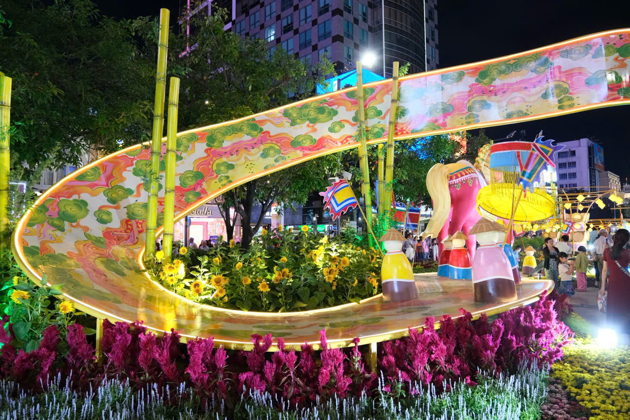 Lần đầu tiên đường hoa có không gian trải nghiệm ban ngày và ban đêm kết hợp nghệ thuật truyền thống và công nghệ hiện đại, tạo không gian Tết đa sắc màu phục vụ nhu cầu vui xuân của người dân và du khách.