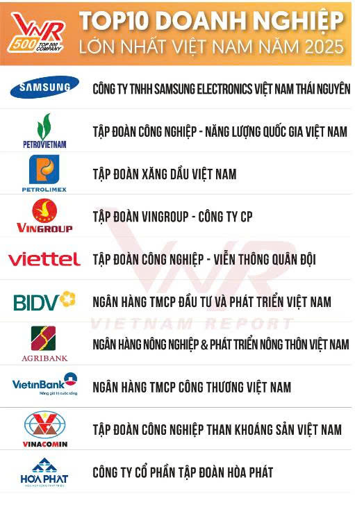 Bảng xếp hạng Top 500 Doanh nghiệp lớn nhất Việt Nam (VNR500) dựa trên kết quả nghiên cứu và đánh giá độc lập theo chuẩn mực quốc tế của Công ty Cổ phần Báo cáo Đánh giá Việt Nam (Vietnam Report) và Báo Vietnamnet phối hợp tổ chức. Bảng xếp hạng dựa trên phân tích các tiêu chí về doanh thu thực tế của doanh nghiệp, tổng tài sản, tổng lao động, lợi nhuận sau thuế và các chỉ số khác như: chỉ số sinh lời ROA, ROE, uy tín truyền thông. Bảng xếp hạng nhằm nhằm tôn vinh 500 doanh nghiệp đạt doanh thu xuất sắc nhất Việt Nam, đồng thời duy trì được hiệu quả kinh doanh ổn định và bền vững giai đoạn 2024 - 2025 và có đóng góp lớn cho sự phát triển của nền kinh tế Việt Nam.