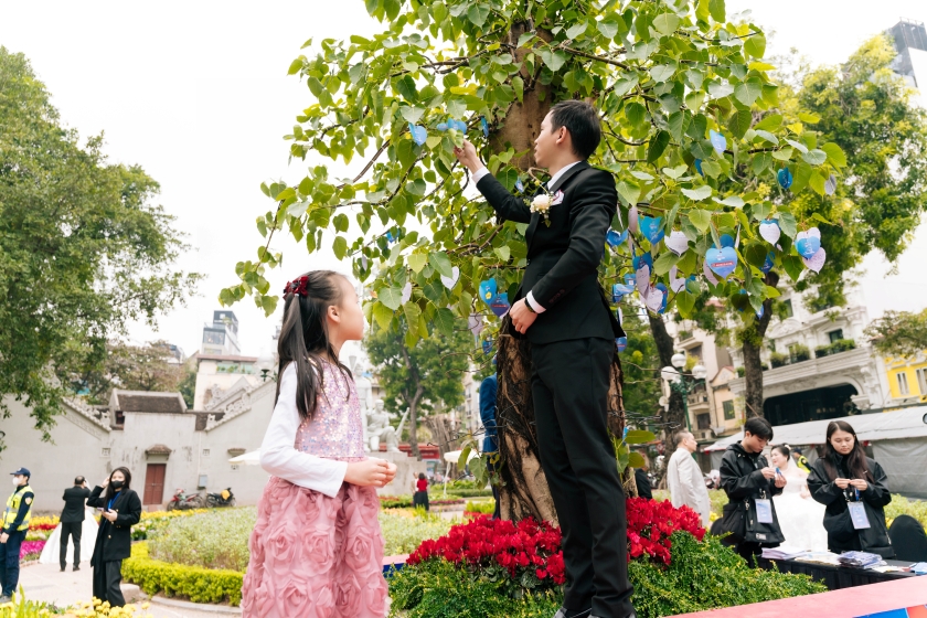 Một chú rể treo điều ước lên Cây Hạnh phúc