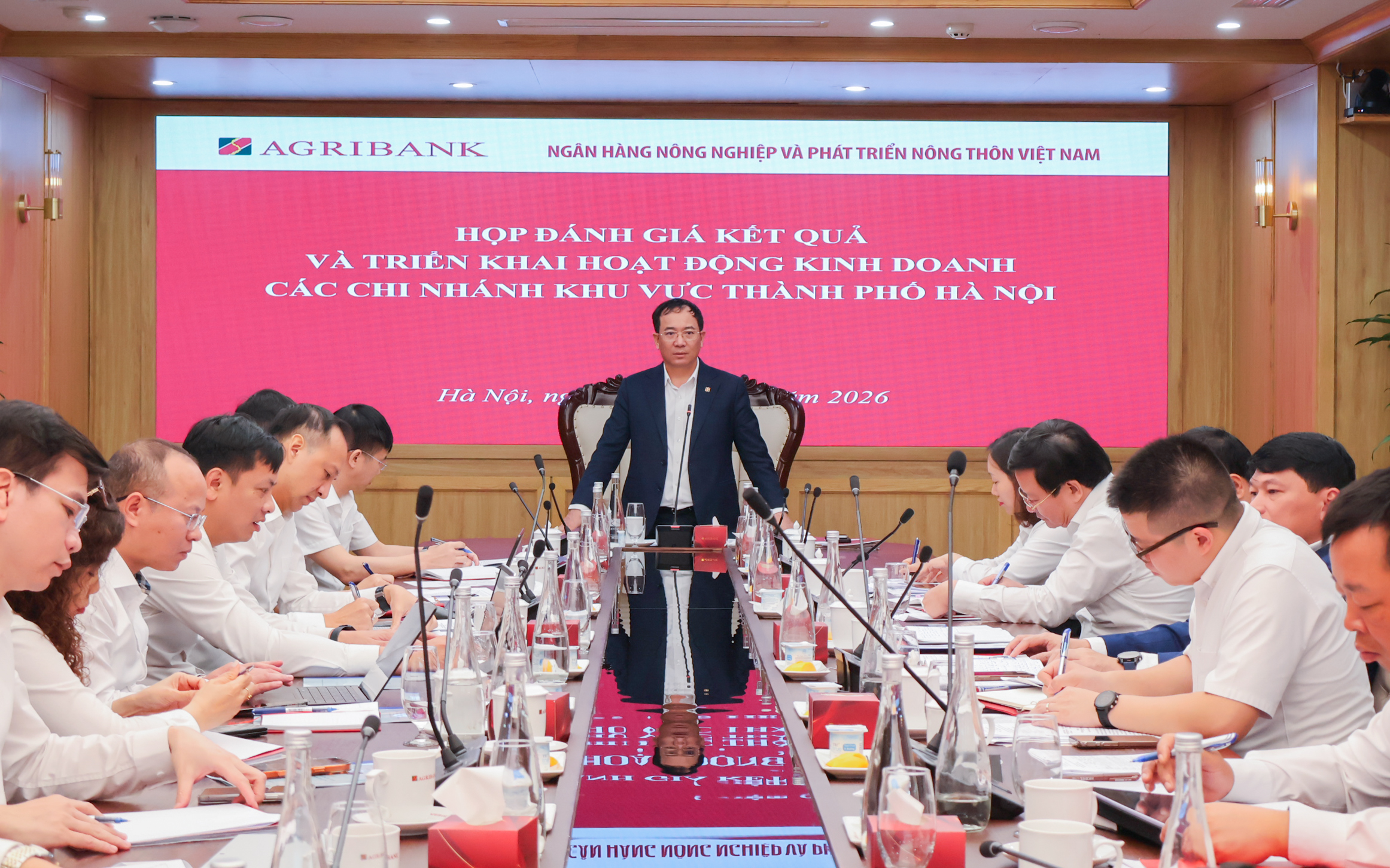 Chiều ngày 12/3/2026, tại Trụ sở chính Agribank, Phó Tổng Giám đốc Đoàn Ngọc Lưu đã chủ trì hội nghị làm việc với 5 chi nhánh Agribank khu vực thành phố Hà Nội gồm: Hà Thành, Láng Hạ, Hà Nội I, Bắc Hà Nội và Tây Hồ nhằm đánh giá tình hình hoạt động kinh doanh, triển khai các giải pháp thúc đẩy tăng trưởng và nâng cao hiệu quả hoạt động trong năm 2026. Tham dự buổi làm việc có đại diện các Ban, Trung tâm tại Trụ sở chính Agribank cùng Ban lãnh đạo và cán bộ chủ chốt của các chi nhánh.